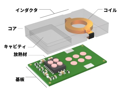 加工成盒状的电感器能发挥金属罩的作用。在本产品内部的PCB设计上也能使输电线的线长变短,尽量减小电流线圈区域的面积,进一步降低EMI。