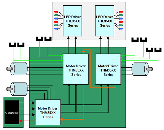 THM356X系列是用于驱动单极步进电机的马达驱动产品。高耐压、低导通电阻、内置4个寄存器,通过串行接口写入设置用寄存器进行控制。